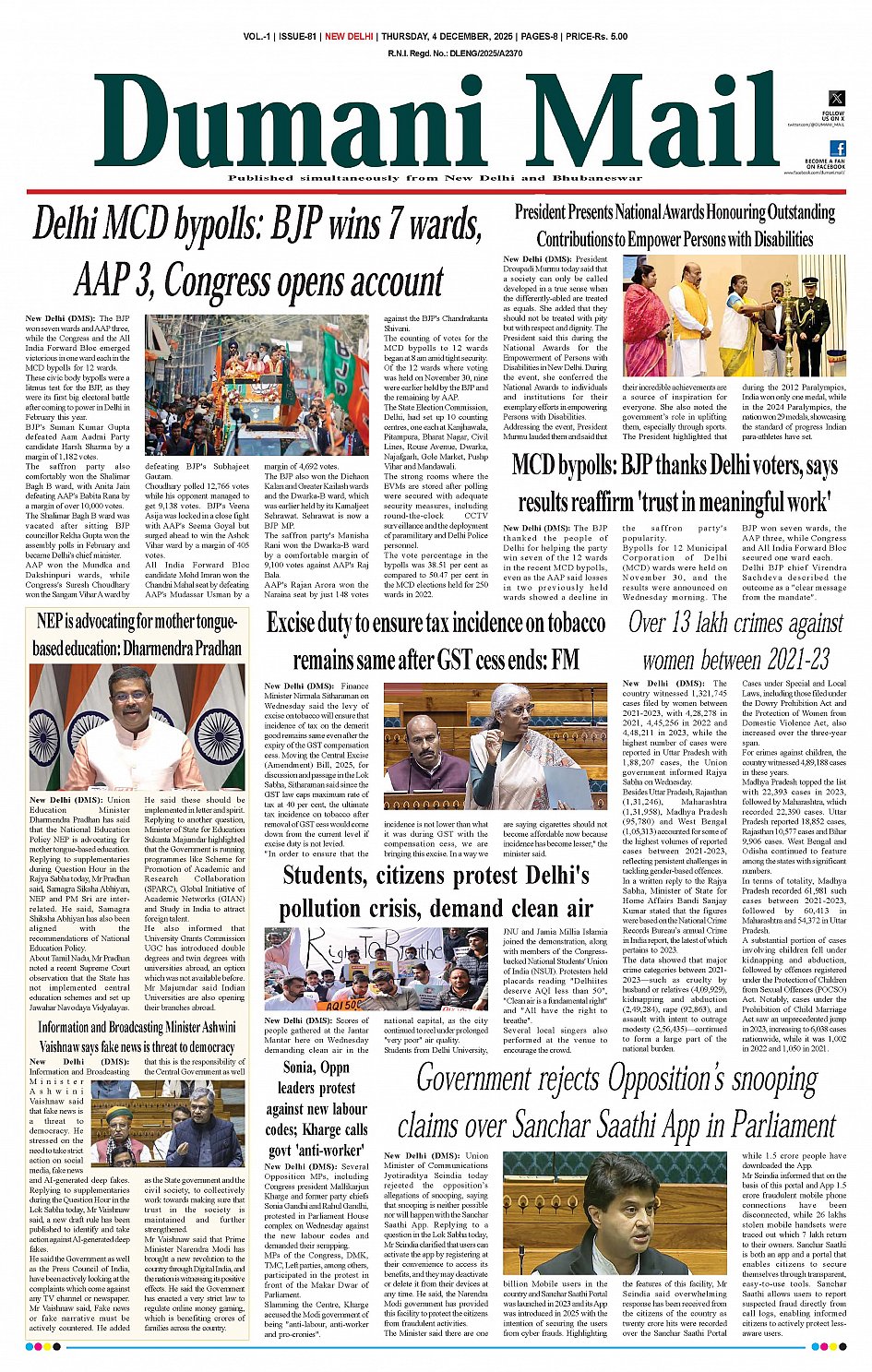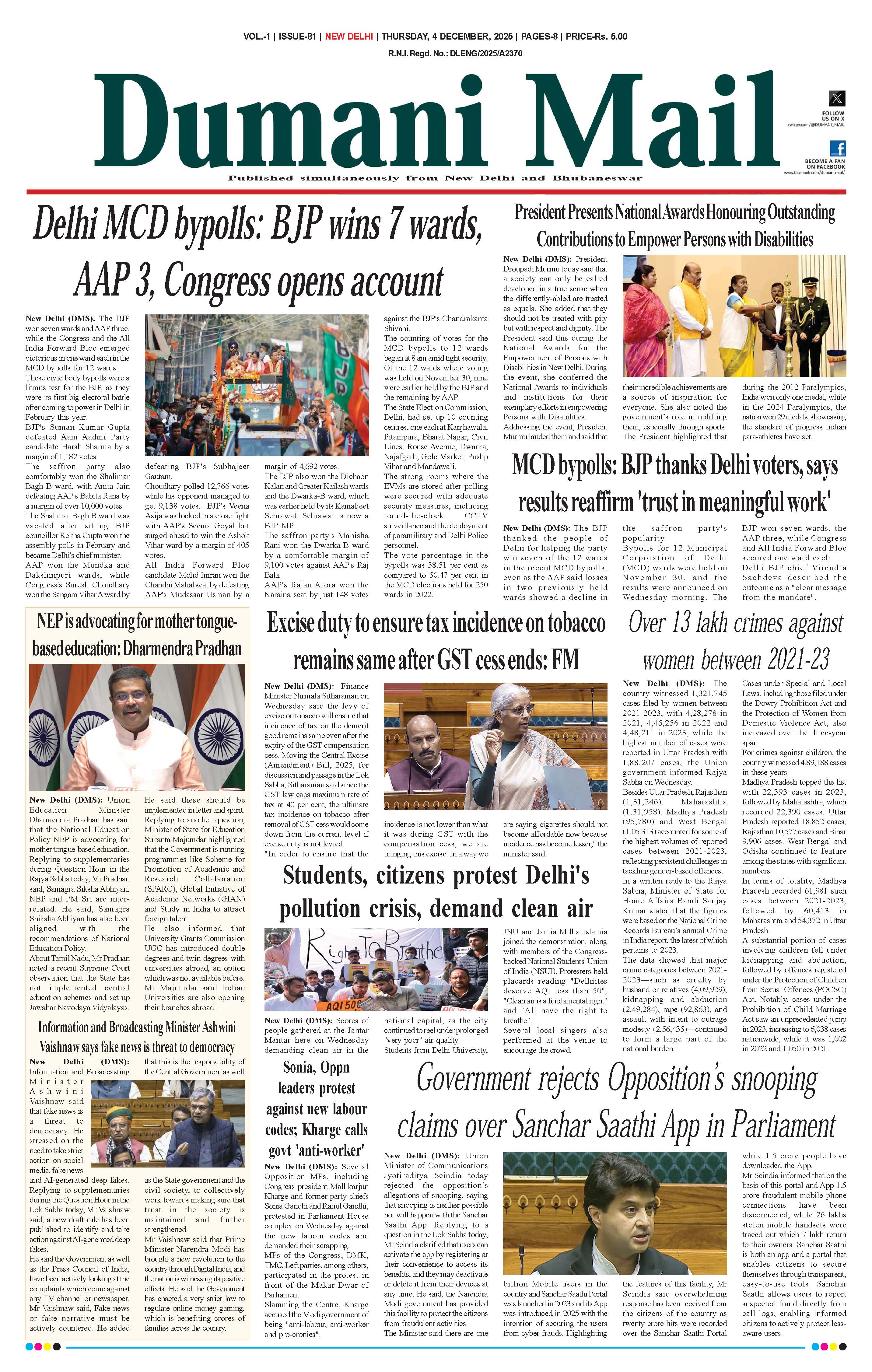 Dumani Khabar E-Paper << First << 1 >> Last >> Page 1Page 2Page 3Page 4Page 5Page 6Page 7Page 8 × Dumani Khabar E-Paper 012030405060708 << First << 1 >> Last >> 012030405060708 01